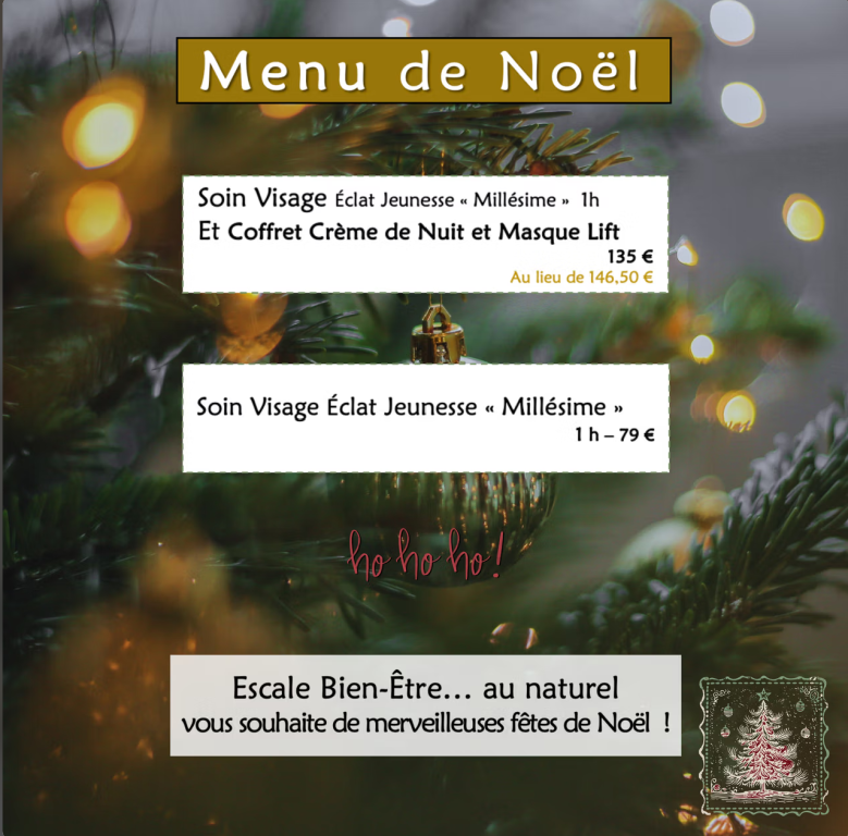 ✨Escale Bien-Être… au naturel dévoile son Menu de Noël : une sélection de soins et de produits pour faire plaisir à coup sûr ! Du cocooning, du naturel et du bien-être… pour tous les budgets ✨